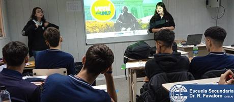 Este lunes 22, dos representantes de la Universidad Nacional de La Plata (UNLP) visitaron nuestra Secundaria para difundir las diferentes carreras que se dan en la casa de estudios. Así como para aclarar la cantidad de beneficios y posibilidades que hay para poder estudiar.